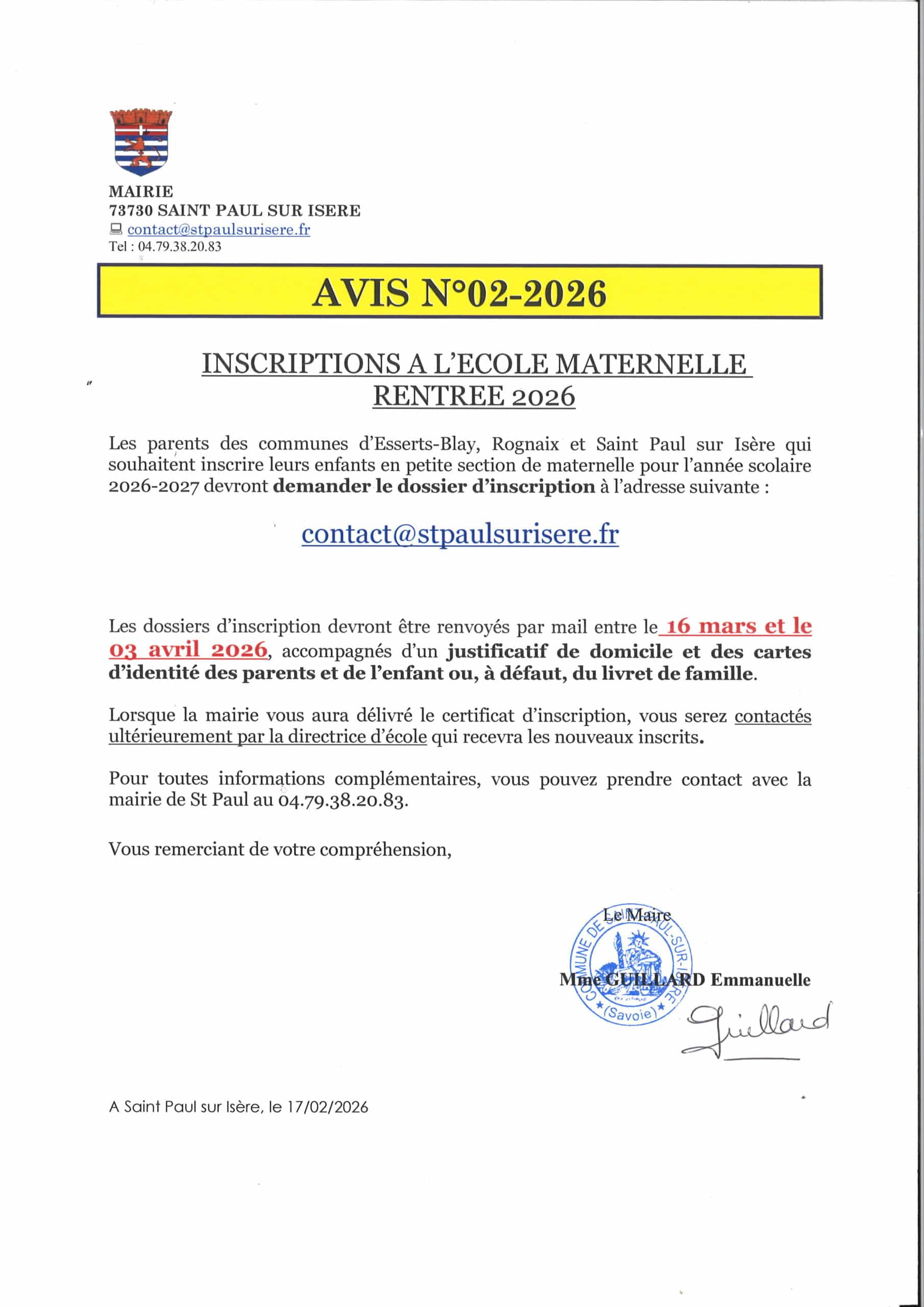 Les inscriptions en maternelle pour la rentrée 2026/2027 sont ouvertes du 16 mars au 03 avril 2026.